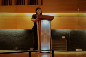 En su discurso de bienvenida, la académica Roxana Tapia destacó los futuros desafíos que los estudiantes deberán seguir enfrentando durante el resto de su vida universitaria y profesional, agregó que: “El estudiante se inicia en una etapa más disciplinar, específica, donde él empieza a sentirse en el rol del kinesiólogo, a evaluar pacientes, empieza a desarrollar todo un proceso de razonamiento clínico-kinésico que permite establecer los objetivos de tratamiento y las pautas que se van a desarrollar con ese paciente para hacer un proceso de rehabilitación”.