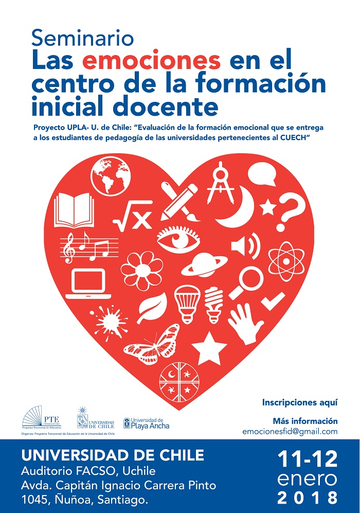 El 11 y 12 de enero se llevará a cabo en Santiago el seminario “Las emociones en el centro de la formación inicial docente” que es organizado por las universidades de Playa Ancha y de Chile.