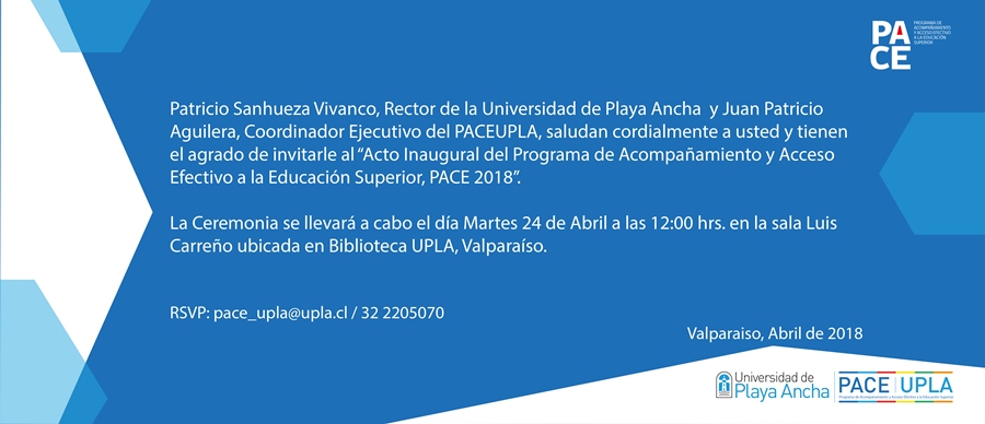 24 de abril: Inauguración Programa PACE UPLA 2018