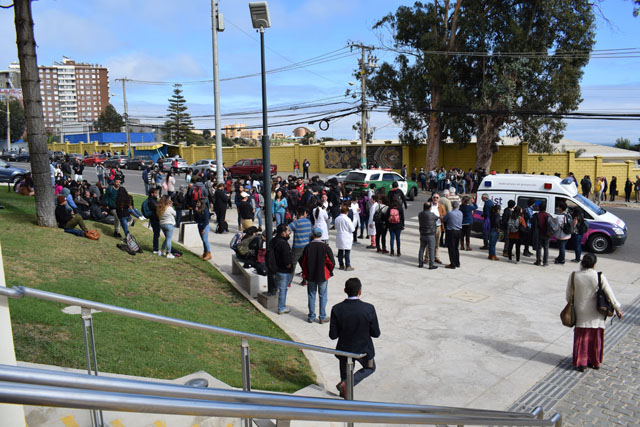 Cerca del mediodía comenzó a sonar una alerta general que llamaba a estudiantes, académicos y funcionarios a salir del edificio. Para ello, un funcionario por piso dirigió a las personas por las escaleras de los sectores norte y sur de la estructura de seis niveles.