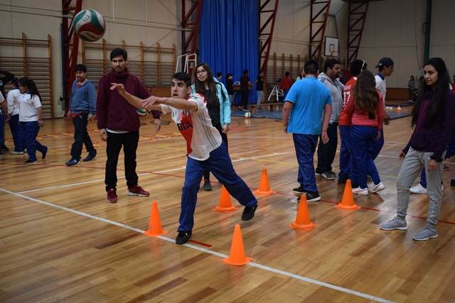 Mientras los escolares se desplazan por el gimnasio de la UPLA, el profesor del “Centro Nueva Siembra” Cristian Carvajal, precisó los aspectos significativos que abordan con esta salida.