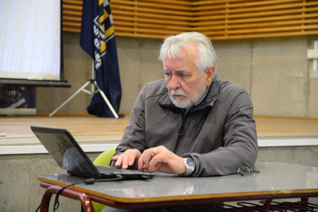 o de charlas que se llevó a cabo en el auditorio del edificio de Ciencias e Ingeniería comenzó con la exposición de Horst H. von Brand, académico del Departamento de Informática de la Universidad Técnica Federico Santa María, quien se refirió al código abierto e innovación.