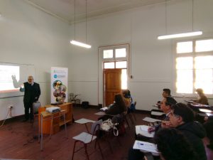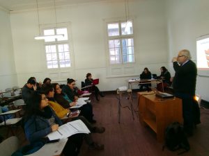 Académicos y estudiantes de la Facultad de Arte de la Universidad de Playa Ancha participaron en una jornada-taller de Evaluación de Competencias en Aprendizaje que dictó el especialista de la Universidad de Chile, Juan Carlos Lepe Muñoz, el 27 de junio en el edificio Independencia.