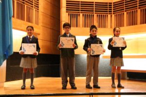 En total fueron 66 los niños y niñas de cuarto a octavo básico que fueron reconocidos con menciones honrosas y primeros lugares por los buenos resultados obtenidos en las dos pruebas realizadas en noviembre.