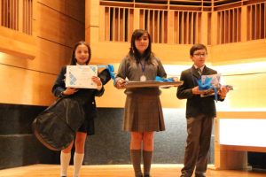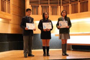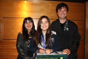 Gabriela Roa Sepúlveda, séptimo año del colegio Champagnat de Villa Alemana: “Estoy sorprendida, nunca pensé tener el primer lugar. Honestamente, pensé que ni mención honrosa tendría y al parecer me fue mejor. Para mí las cosas más importantes son el tema intelectual, musical y artístico, porque es lo que me va a definir cuando sea grande y si me esfuerzo voy a poder estudiar lo que quiera”.