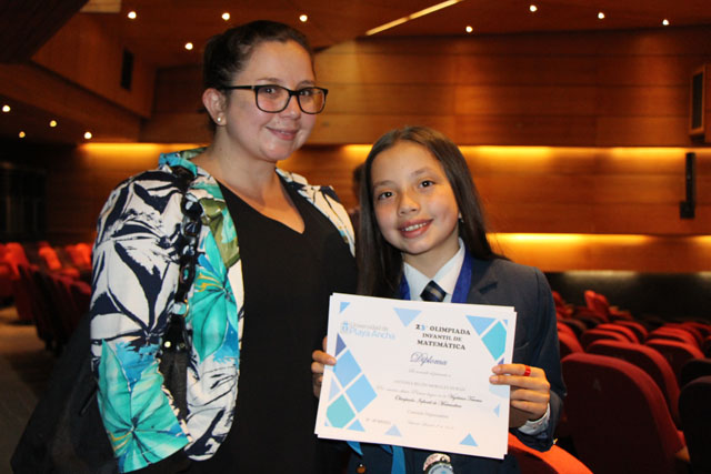 Nicole Durán, mamá de Antonia Morales: “La iniciativa de la universidad me parece espectacular porque son instancias en que incorporan a los apoderados, si bien es cierto es un día sábado, hay que acompañar a los hijos en lo que se quieran desarrollar. Desde pequeña presentó interés por la matemática y la vamos a acompañar siempre para que se pueda desarrollar de manera integral en todo lo que quiera. Mis felicitaciones a la universidad por la organización y a la profesora del colegio que la motivó a participar”.