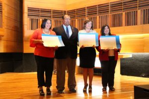 Se trata de Mildred Morales Sarmiento, secretaria de la Facultad de Ingeniería, que recibió su diploma como Analista Químico. En tanto, el coordinador de la carrera de Administrador de la Gestión Pública, Javier Castillo Allaria, les entregó el título a María Cristina Aros Osorio, Karen Andrea Espíndola Matta, Lorena Palma Navarrete y Valezka Saa Carrillo, quienes se desempeñan en Imprenta, Operaciones, Sistema de Bibliotecas y Prorrectoría, respectivamente.