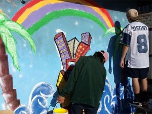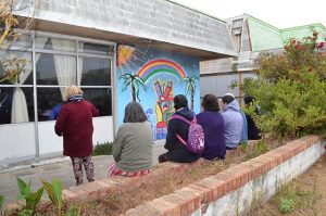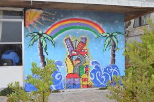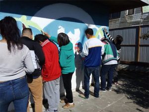 “Acá no se trabajó desde la mirada de los estudiantes, sino que fue una tarea mancomunada con los usuarios, donde cada uno propuso una idea distinta. Por ende el mural mezcla palmeras con una serie de paisajes de Valparaíso que representan el respeto a las ideas principales de los pacientes, a su sentir y a la pertinencia que esta actividad simbolizó para cada uno de ellos”, planteó la docente.