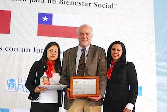 Dr. Muñoz junto a Laura Guadalupe Vargas, presidenta municipal y Dr. Raúl Garcia Tlapaya, Rector de la universidad mexicana.