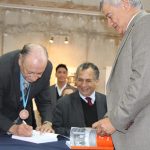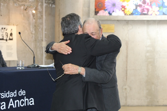 Bajo un sostenido y afectuoso aplauso de la comunidad universitaria reunida en la Biblioteca Central de la UPLA, el Dr. Larrieu visiblemente emocionado, se abrió paso entre profesores, funcionarios, exalumnos y estudiantes que lo saludaron al inicio de la ceremonia.