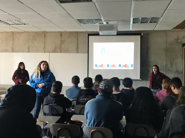 Es así como la delegación del colegio Galileo de Quillota escuchó a las estudiantes de Ingeniería Civil Ambiental Constanze Canave Negroni, Scarlett Rencoret Cornejo y Paula Olivares Vargas, quienes dieron cuenta de una carrera que las forma para marcar una diferencia en términos de formación de capital humano invitándolos a ser ingenieros/as en acción, integrales y solidarios.
