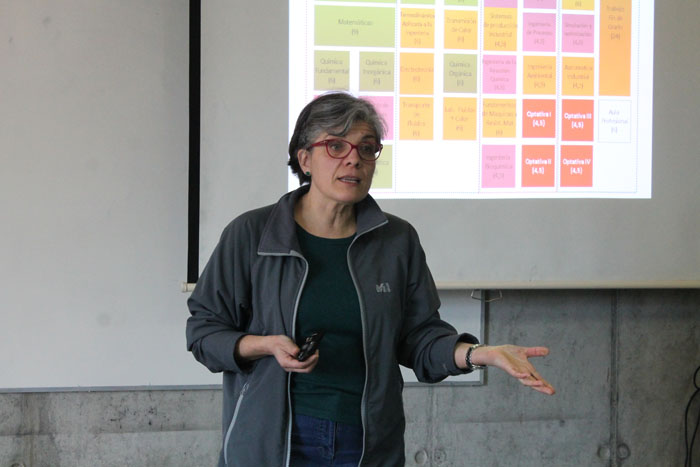 La Dra. Mosquera además se refirió a cómo influyó el Plan Bolonia en la elaboración de la malla curricular de la carrera de Ingeniería Química y también a la oferta académica que ellos imparten como el Máster en Ingeniería Química y Bioprocesos y el Doctorado en Ingeniería Química Ambiental, que sirvió para hacer una comparación con las asignaturas impartidas en Chile, metodologías de enseñanza, sistema de evaluación, entre otros.