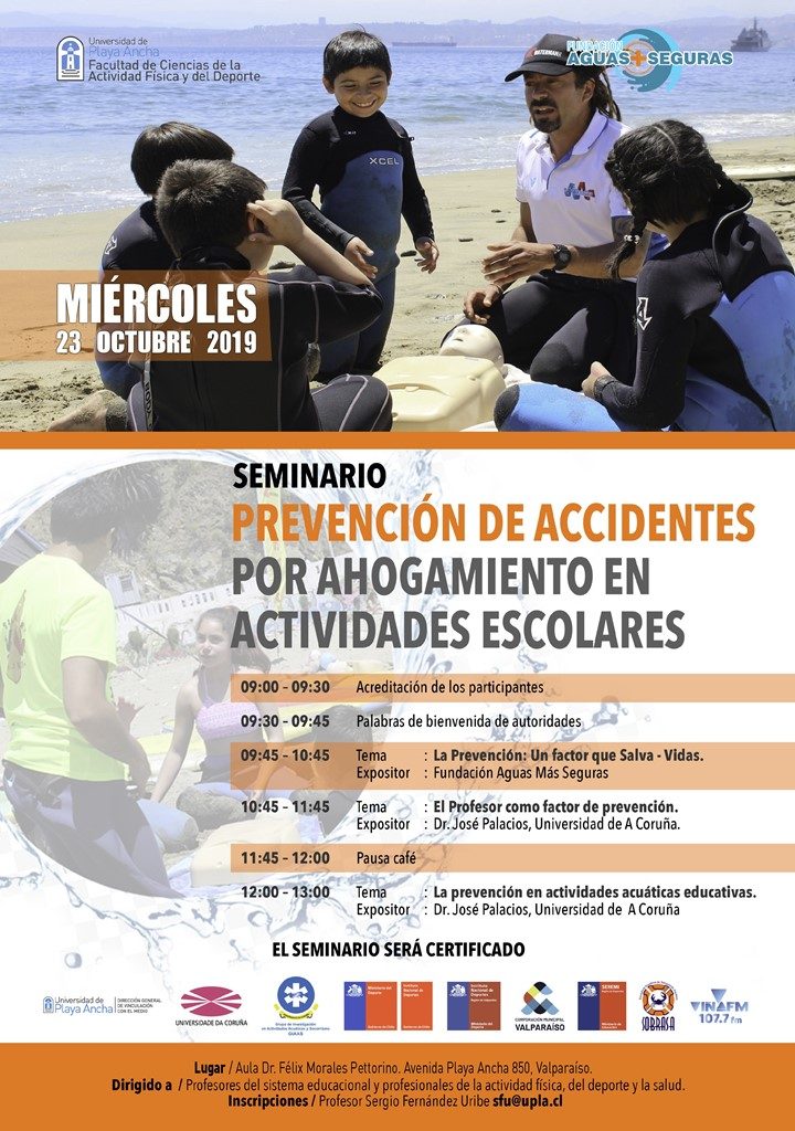 El 23 de octubre tendrá lugar en el Aula Dr. Félix Morales Pettorino de la UPLA el “Seminario Prevención de Accidentes por Ahogamiento en Actividades Escolares”, dirigido a  profesores del sistema educacional y profesionales de la actividad física, del deporte y la salud.