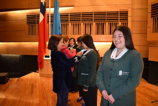Pamela Díaz Suazo, Directora del Departamento de Educación Parvularia, explicó que las estudiantes reciben su delantal como herramienta de trabajo para su formación profesional, por lo tanto, esta ceremonia marca un hito en su vida académica.