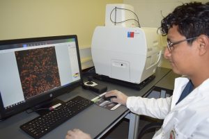 En la UPLA accedió también al equipo lector multimodal Cytation5, Biotek, capaz de realizar múltiples experimentos de una sola vez, que van desde observaciones microscópicas a cuantificaciones de componentes, en ensayos que arrojan imágenes y datos numéricos, en un solo experimento.
