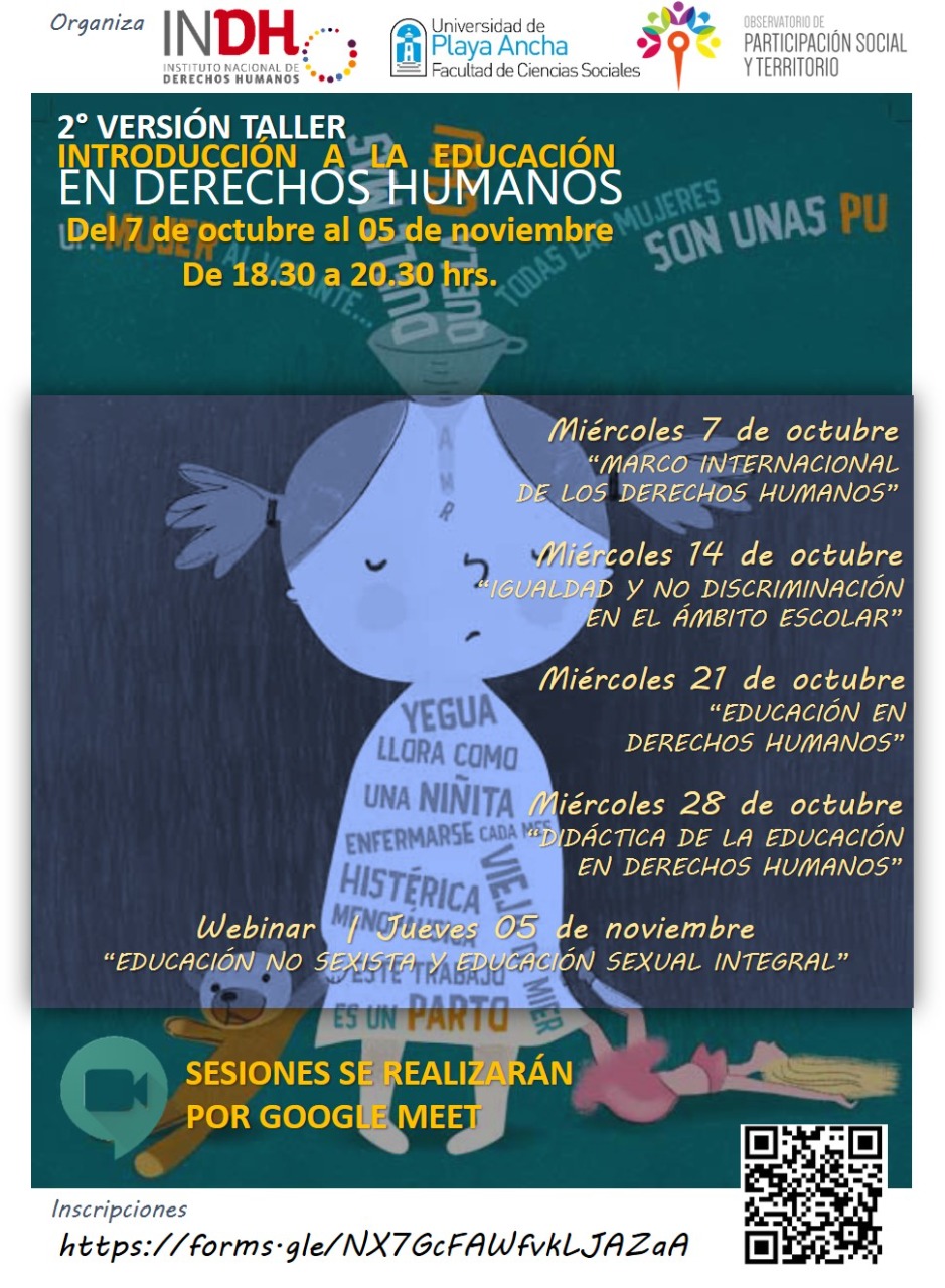 El Observatorio de Participación Social y Territorio, perteneciente a la Facultad de Ciencias Sociales de la Universidad de Playa Ancha, y la sede regional Valparaíso del Instituto Nacional de Derechos Humanos (INDH) abrieron las inscripciones para la segunda versión del Taller de Introducción a la Educación en Derechos Humanos.