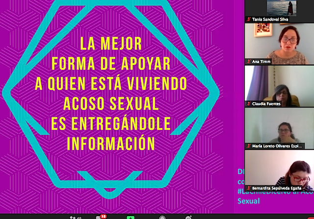 La cita, que se inició con la presentación de dos videos de campaña contra el acoso, la moderó María Angélica Pérez, integrante del Consejo Asesor de la mencionada dirección, quien destacó la importancia de que las asociaciones de funcionarios y funcionarias cuenten con un espacio para desarrollar este tipo de temáticas.