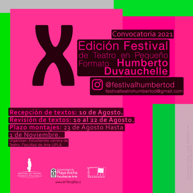 Hasta el martes 10 de agosto se extenderá la convocatoria para que estudiantes de las escuelas de teatro de todo Chile envíen sus textos dramáticos inéditos, para así optar a ser parte de las compañías que darán vida a la X edición del Festival de Teatro Humberto Duvauchelle que organizan anualmente (desde 2012) estudiantes de Teatro de la Facultad de Arte de la UPLA.