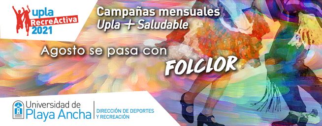 “Queremos invitar a todos y todas para que puedan ser parte de esta gran parrilla programática que tenemos en este mes de agosto, el cual hemos denominado “Agosto se pasa con folclor”, para que participen de cada una de las actividades que tenemos programadas con mucho entusiasmo para cada uno de ustedes, donde podrán aprender algún baile folclórico y también disfrutar de nuevos aprendizajes en nuestros ciclos de charlas. Así es que todas y todos están invitados a participar en esta nueva campaña mensual UPLA +Saludable, Agosto se pasa con folclor”.