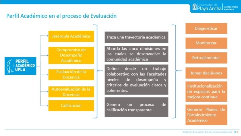 Esto implica actualizar toda la normativa vigente, incorporando los nuevos mecanismos y procedimientos desarrollados, por lo que el Perfil del Académico UPLA se transformó en la carta de navegación que permitirá alinear políticas, desafíos y normativas, como también en un referente para definir la elaboración del modelo, siguiendo las dimensiones y competencias declaradas en dicho perfil.