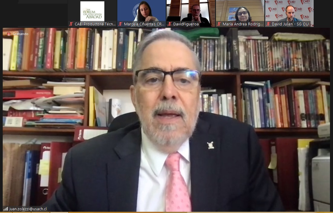 El rector Juan Manuel Zolezzi abrió el conversatorio valorando la posibilidad de intercambio que abre el CAEI, cuyo país anfitrión en esta séptima versión en Chile. “Es el diálogo el que nos permite avanzar hacia horizontes compartidos, que aporten al bien común de nuestros países y de nuestras respectivas sociedades”, sostuvo el vicepresidente ejecutivo del CRUCH.