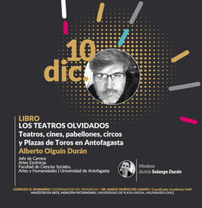 «Los Teatros Olvidados: Teatros, cines, pabellones, circos y plazas de toros en Antofagasta (1871-1930)»: Alberto Olguín Durán, jefe de carrera de Artes Escénicas de la Facultad de Ciencias Sociales Artes y Humanidades de la Universidad de Antofagasta y autor del libro «Los Teatros Olvidados».
