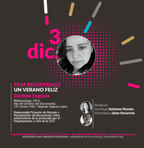 «Film recuperado: Un verano feliz»: Daniela Segovia, bibliotecóloga de la Universidad de Playa Ancha, hija de Alejandro Segovia López, director del documental «Un Verano Feliz» y responsable del proyecto que permitió su rescate y recuperación.