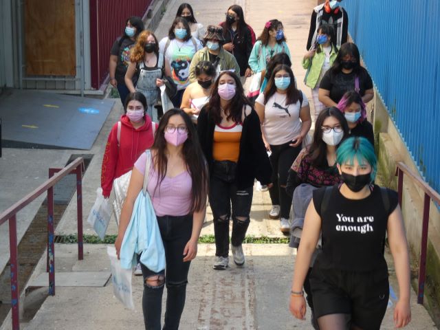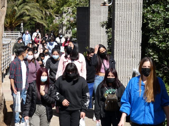 “Quienes vienen hoy son estudiantes que participan en los programas PACE y de Acceso Inclusivo, que es el programa de acceso a carreras de Ingeniería, el Programa Emprendimiento e Innovación Social – para carreras no pedagógicas-, el Propedéutico de Pedagogía y el Propedéutico de Teatro. Como hemos estado en un contexto virtual y ya podíamos venir a la universidad, quisimos invitarlos a conocer su futura casa de estudios y a que se identifiquen también con el territorio de Playa Ancha. Muchos son de lejos, vienen de Quillota, Calera, Los Andes, Llay-Llay, de Valparaíso también, Quilpué, entonces estaban bien nerviosos y entusiasmados, porque algunos nunca habían venido a Playa Ancha”, sostuvo la coordinadora.