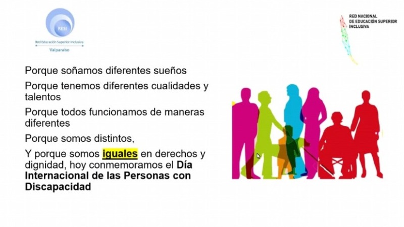 En el marco del “Día Nacional de la Inclusión Social y la No Discriminación”, celebrado en concordancia con el “Día Internacional de las Personas con Discapacidad”, proclamado por la Asamblea General de las Naciones Unidas en 1992, se desarrolló el conversatorio «Aprender en Pandemia: Compartiendo Experiencias de Estudiantes con Discapacidad en Educación Superior», actividad organizada por la Red Nacional de Educación Superior Inclusiva (RESI), de la cual la Universidad de Playa Ancha forma parte.