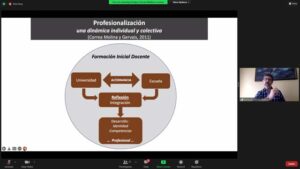 Esta vez, el especialista sostuvo que la FID es vista como una dinámica individual y colectiva a la vez, puesto que para que la profesionalización se produzca, debe implicar una alternancia entre el medio que forma, desde el punto de vista de la academia, y el medio que forma desde el punto de vista de la praxis, es decir, la escuela.