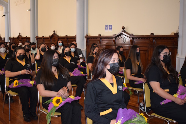 “Ahora que están a meses de completar su proceso de formación, espero que lo finalicen en forma exitosa y representen a su alma mater como corresponde en el mundo profesional. En este nuevo desafío, espero que recuerden el camino que como profesores, les hemos mostrado desde el inicio, que se basa en el desempeño ético, la actitud de servicio y compromiso social”, sostuvo Paulina Zavala, quien llamó a no olvidar el trabajo en equipo y respetar siempre la dignidad de todos los usuarios y usuarias.