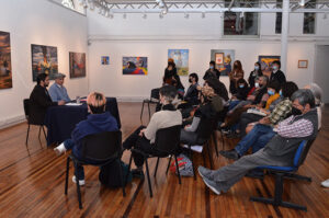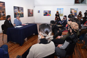 Como una actividad pedagógica y de razonamiento respecto de las obras de la exposición “De-Cadencia” del pintor posmoderno Juan Pablo Neira, fue catalogado el conversatorio realizado en la Sala El Farol de Valparaíso, lugar hasta donde llegaron estudiantes de Licenciatura en Arte de la UPLA para interactuar con el artista porteño y con el docente de la Facultad de Arte, Álvaro Miranda Pérez.
