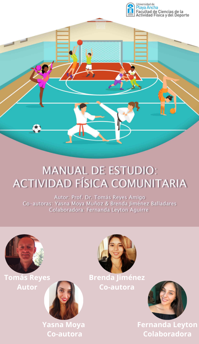 La Facultad de Ciencias de la Actividad Física y del Deporte de la Universidad de Playa Ancha invita a la presentación del “Manual de estudio: Actividad física comunitaria” del profesor Tomás Reyes Amigo, las coautoras estudiantes de Pedagogía en Educación Física, Yasna Moya Muñoz y Brenda Jiménez Balladares, y la colaboradora Fernanda Leyton Aguirre, profesora de Educación Física de esta casa de estudios.