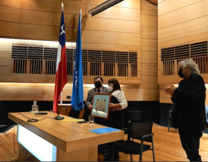 Tras finalizar la exposición de Elisa Loncon, el decano le entregó un diploma de reconocimiento por su participación en esta cita académica, que concluyó con el aplauso efusivo de todos los asistentes.