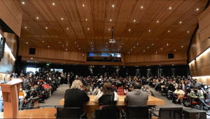 La exposición de la expresidenta de la Convención Constitucional, fue atentamente seguida por todos los asistentes al Aula Félix Morales Pettorino, ocasión en la que hizo énfasis en la transformación de la historia de nuestro país, que se basa en la democratización del poder.