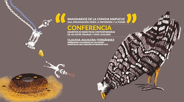 «Imaginarios de la Comida Mapuche, una aproximación desde la orfebrería y la poesía» se denominó la clase magistral que la académica de la carrera de Diseño de la Facultad de Arte UPLA, Mag. Claudia Aguilera Fernández, dictó a estudiantes del Magíster en Didácticas Contemporáneas de las Artes Visuales de la Universidad Metropolitana de Ciencias de la Educación (UMCE).