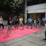 Javiera Barraza de 2º año de Terapia Ocupacional mientras ejercita la coordinación de movimientos de brazos y hombros, explicó por qué se inscribió en este programa. “Siento que después de dos años de pandemia el estado físico y la actividad física son fundamentales, sobre todo para una vida universitaria que conlleva ansiedad, estrés y no tener tiempo libre. Aparte, sirve para relajarse y tener un rato de diversión en la semana, que es demasiado necesario”.