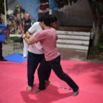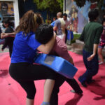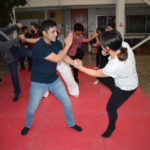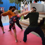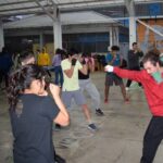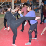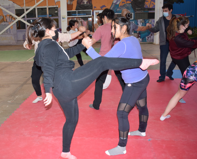 “Hemos trabajo movimientos básicos de pies, golpes con las zonas duras del cuerpo con rodillas, canillas y codos, por ejemplo. También hemos trabajado técnicas de espalda al piso para cuando alguien nos lleva al suelo, así como diferentes tipos de asfixia, palanca al hombro, al codo y cómo sacarme a alguien de encima”, explicó el monitor de Defensa Personal.