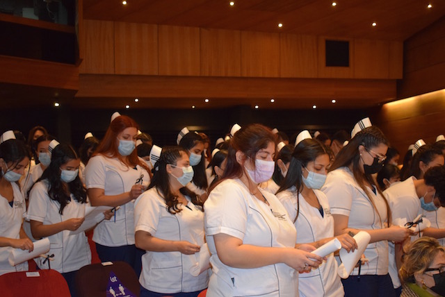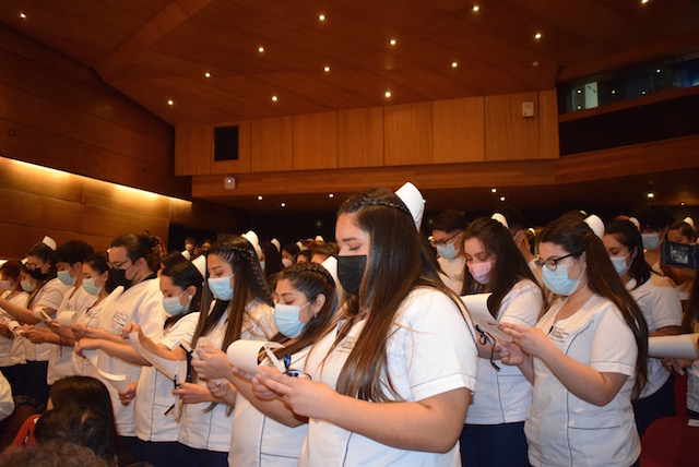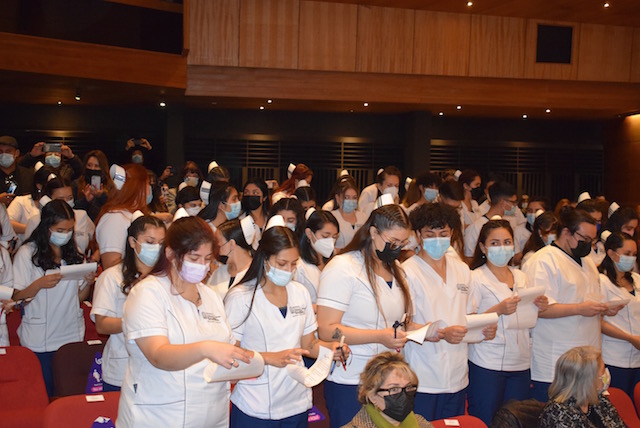 “El uniforme representa a un profesional, y hoy ustedes lo lucen porque se lo han ganado, porque se lo merecen. Después de largas horas de sacrificio y estudio han querido mostrar en esta asamblea, con mucho orgullo, que están preparados para un camino maravilloso que es el cuidar. Entonces, lleven este uniforme con dignidad”, afirmó.