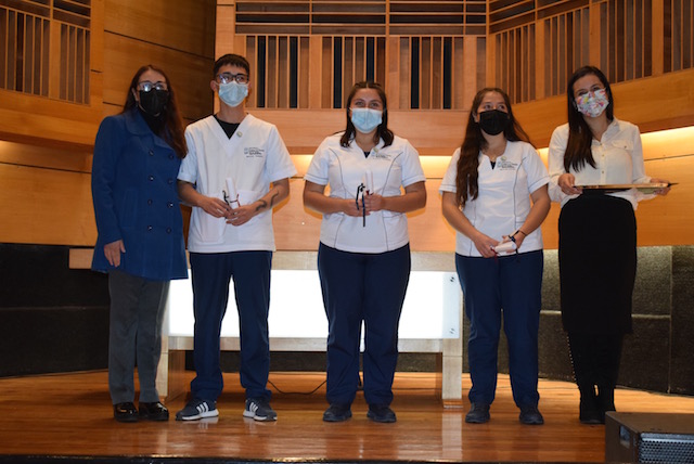 Tras sus palabras y en calidad de ministro de fe, la directora tomó el compromiso solemne a los estudiantes de Enfermería, mediante el cual expresaron su decisión de utilizar el uniforme de manera honesta y digna, representando los principios éticos y valóricos característicos de esta profesión.
