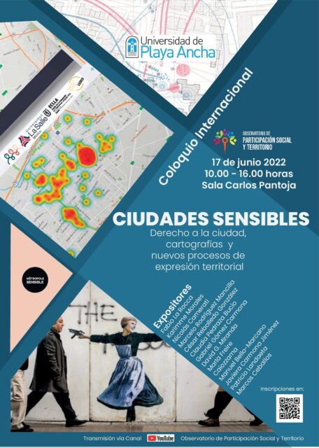 Para el próximo viernes 17 de junio, entre las 10 y las 16:00 horas, en la Sala Carlos Pantoja de la Casa Central, el Observatorio de Participación Social y Territorio, el Grupo de Investigación de Pedagogías Latinoamericanas: Educación, Política y Ciudadanía, y Habitantes Organizados, de la Facultad de Ciencias de la Educación, convoca a estudiantes, académicos, investigadores, asociaciones civiles, organizaciones comunitarias y a la sociedad civil, al coloquio internacional “CIUDADES SENSIBLES Derecho a la ciudad, cartografías y nuevos procesos de expresión territorial”.