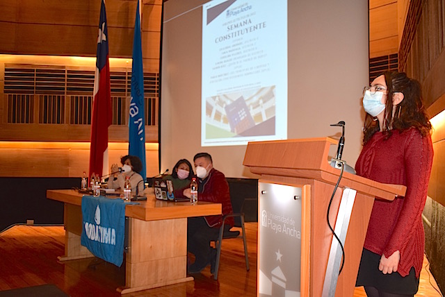 Carolina Vilches Fuenzalida, geógrafa, egresada de la Universidad de Playa Ancha y miembro del Movimiento de Defensa por el Acceso al Agua, la Tierra y la Protección del Medioambiente, Modatima, constituyente distrito 6, se refirió al borrador de la nueva Constitución y al trabajo que realizaron en forma colectiva. En este contexto, abordó las transformaciones que se introdujeron al texto, haciendo énfasis en la recuperación de las aguas para las comunidades y los territorios, la desprivatización y el término del maltrato a la naturaleza y la protección a los glaciares para salvaguardar la vida y seguridad del país.