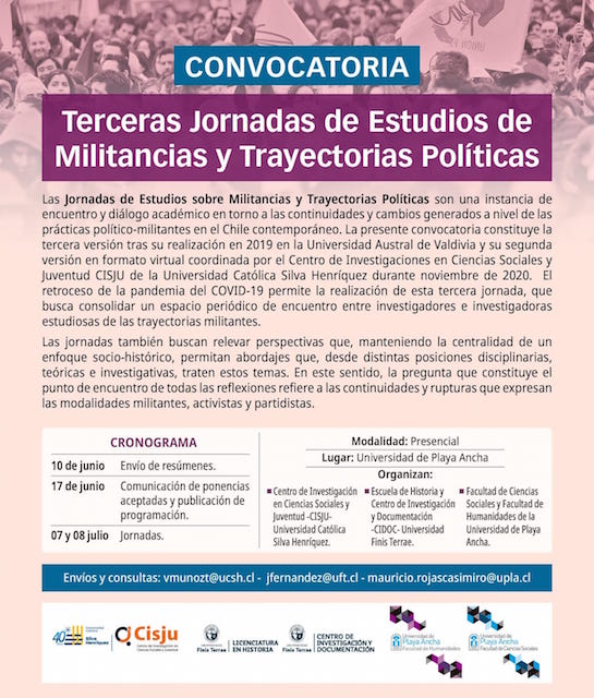 “Sin duda será una instancia para consolidar este espacio periódico de encuentro entre investigadores e investigadoras. Básicamente, lo que haremos es, que desde distintas posiciones disciplinarias , tanto teóricas como investigativas, se tratarán temas de militancias y trayectorias políticas, puede ser de una persona, un grupo, una fracción o partido político”, sostuvo Rojas.