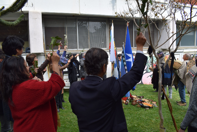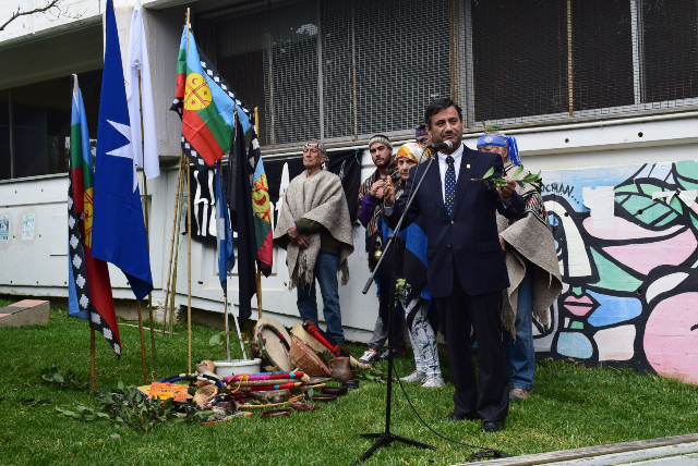 “Esto tiene un sentido religioso, en el deseo de que todo esté bien, que todo sea llevadero para todos, que todo sea hermandad, lo que corresponda a una casa de estudios y camine en ese sentido. Entonces, la instalación del rehue es el altar para nosotros y está en vigencia permanente, de día, de noche, cuando yo quiera y necesite ir a rezar”, afirmó Juan Epumaqui.