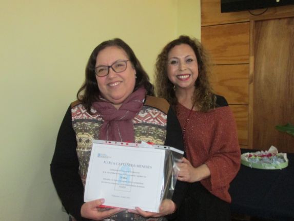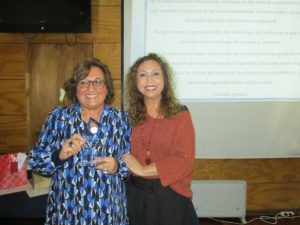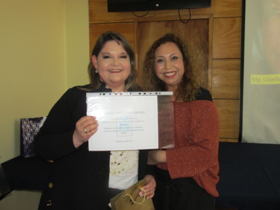Para finalizar, esta celebración del Día del Profesor, la Decana junto con la Secretaria Académica, Andrea Castillo Villalón, entregaron un pequeño obsequio a las y los profesores presentes como un reconocimiento a su importante y trascendental tarea.