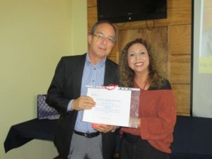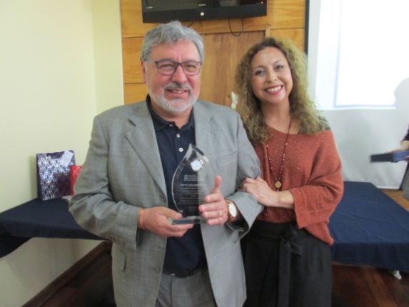 Raúl Pizarro Sánchez (Luisa Fuentes, funcionaria de la Facultad de Ciencias de la Educación, compañera y amiga del profesor, recibió esta distinción en su nombre).