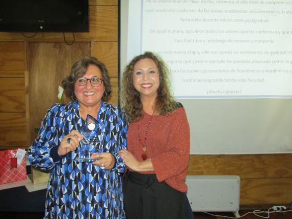 El evento partió con la entrega de un reconocimiento a las maestras María Inés Fuentes y Teresa Bruna y al maestro Claudio Valenzuela, quienes, tras una vasta trayectoria tanto en la docencia como en cargos de gestión, hoy se acogen al retiro. En la instancia, se destacó su profesionalismo, compromiso y alto sentido de responsabilidad con la facultad y la universidad, sobre todo por tratarse de cualidades que significan un ejemplo para las nuevas generaciones.