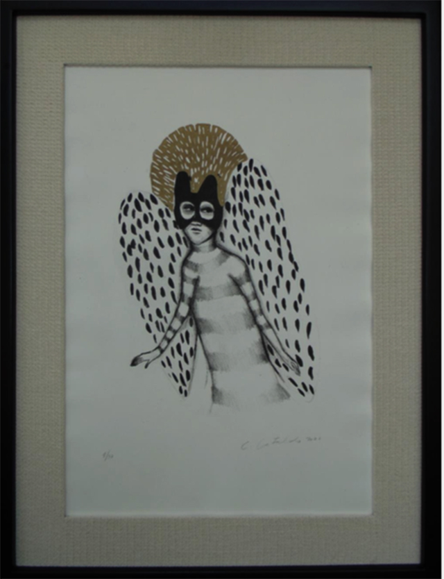 La muestra aglutina 31 grabados, entre los cuales se encuentran la litografía de Claudia Cataldo Martínez y la mixocolografía de Edwin Rojas Chávez, ambos artistas y docentes de la Facultad de Arte de la Universidad de Playa Ancha, quienes fueron invitados a ser parte de esta carpeta visual centrada en las problemáticas sociales en relación con la importancia de salvaguardar la Mariposa Monarca, patrimonio natural de la humanidad.