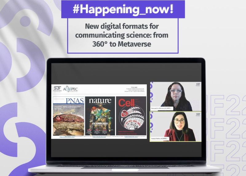 Allí, Bernardita Skinner expuso en el taller “Nuevos formatos digitales para comunicar ciencia: del 360° al Metaverso”, junto a Nadia Politis, vicepresidenta de la Asociación Chilena de Periodistas y Profesionales para la Comunicación de la Ciencia (ACHIPEC). Esta organización participó como entidad asociada y sus miembros pudieron exponer en cinco charlas magistrales y participar en el “Bloque Latinoamericano SJF”.