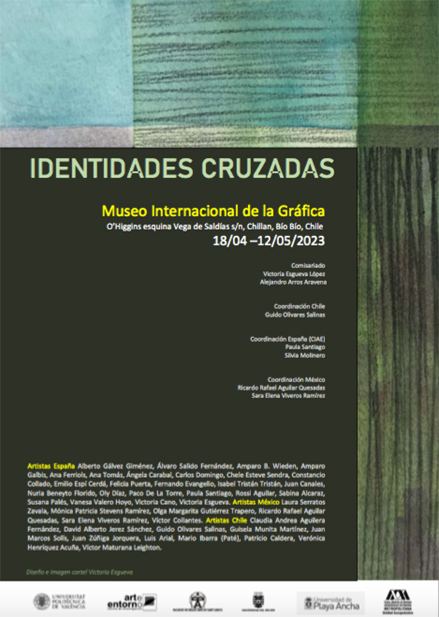 “Identidades cruzadas” permanecerá expuesta hasta el 12 de mayo en el Museo de Chillán, actuando como comisarios de la muestra Victoria Esgueva López, profesora del Departamento de Dibujo de la Universitat Politècnica de València y Alejandro Arros Aravena, director de la Escuela de Diseño Gráfico de la Universidad del Bío-Bío de Chile.
